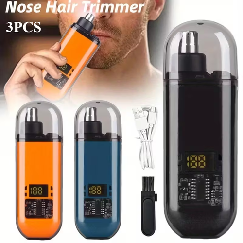 3 pc installed ear and nose hair trimmer with LED display, suitable for both men and women, painless USB rechargeable eyebrow, facial and nose hair trimmer, professional double-edged blade